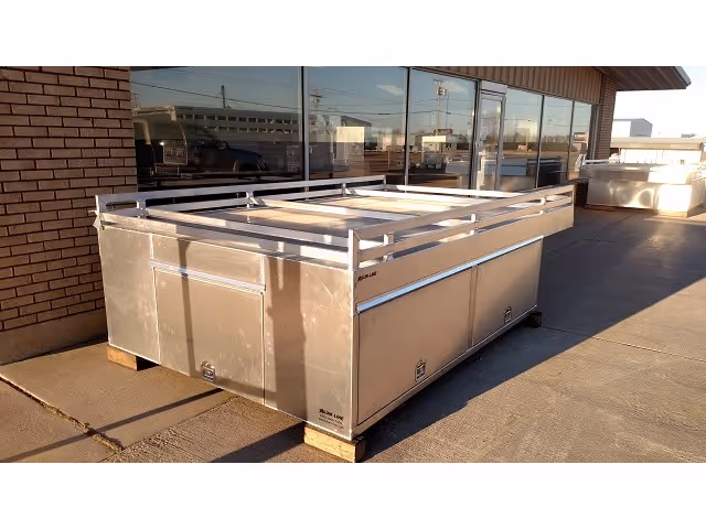 Contractor Truck Toppers are all aluminum shells designed to go over the bed of a pickup truck. The Alum-Line versions are built to be rugged, customizable, and optimized for trade or contractor use: tool storage, security, hauling gear, often with compartments or shelving inside. Also available is our “pod” version. A complete self-contained unit available with storage compartments. Fork lift pockets, ladder rack and other useful options.